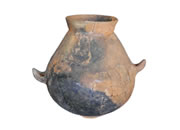 - 甕の胴部に牛の角の形をした把手がついた容器です。